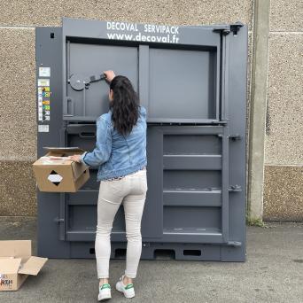 - Réduction par 3/4 du volume de déchets cartons/plastiques