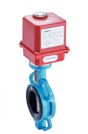 Vanne papillon à oreilles de centrage corps fonte - papillon inox - joint NBR (58412) avec actionneur électrique IP65 (50835)