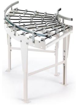Rayon extérieur : 100, 150 et 220 cm / Supports : Rouleaux ou galets / Charge maximale : 160 Kg/ml / Matières du spport : Plastique, PVC, Acier, Acier zingué